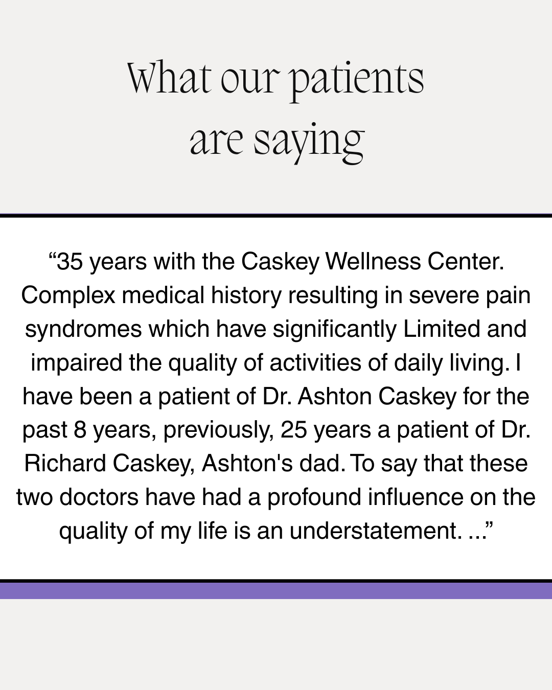 Welcome to the Caskey Wellness Center, a family-owned and operated business dedicated to providing comprehensive healthcare in Middlebury, CT. After 40 years of experience, we have acquired the skills and tools to provide answers for some of the most complicated health conditions. Whether you are dealing with a new health condition or one that is longstanding and yet to be resolved, you can trust the Caskey Wellness Center to uncover the underlying cause and provide the necessary solutions. Our approach is to provide individualized evaluations and treatment plans, utilizing a natural approach to help patients reach their optimal level of well-being. Let the Caskey Wellness Center be the “KEY to your health.” See below how we can assist you towards your goals.