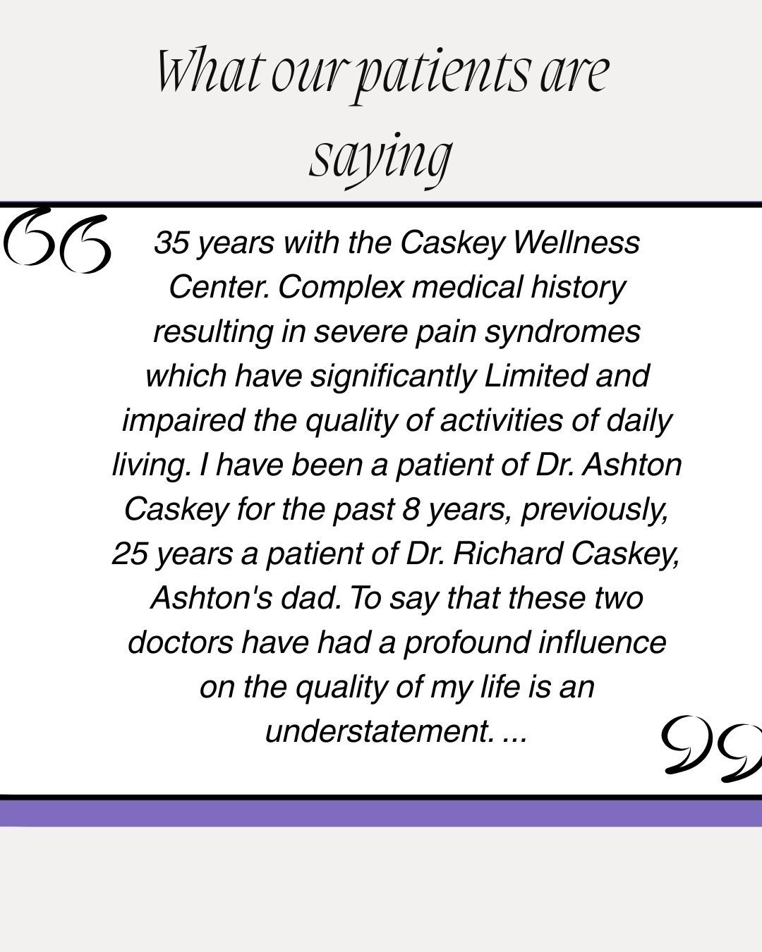 Welcome to the Caskey Wellness Center, a family-owned and operated business dedicated to providing comprehensive healthcare in Middlebury, CT. After 40 years of experience, we have acquired the skills and tools to provide answers for some of the most complicated health conditions. Whether you are dealing with a new health condition or one that is longstanding and yet to be resolved, you can trust the Caskey Wellness Center to uncover the underlying cause and provide the necessary solutions. Our approach is to provide individualized evaluations and treatment plans, utilizing a natural approach to help patients reach their optimal level of well-being. Let the Caskey Wellness Center be the “KEY to your health.” See below how we can assist you towards your goals.